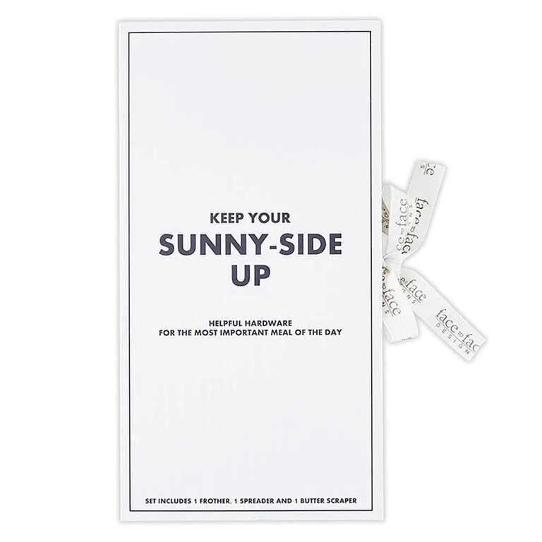 Start off every day in a good way with this breakfast tool set from Face to Face. Stainless steel kitchen utensil set includes a frother for making foamy lattes, a flat spoon-shaped jam spreader and a butter scraper along with a recipe for Birds in a Nest inside the front cover of the book-shaped box. This breakfast tool kit makes a great gift for weddings, Mother’s Day, Father’s Day and more.