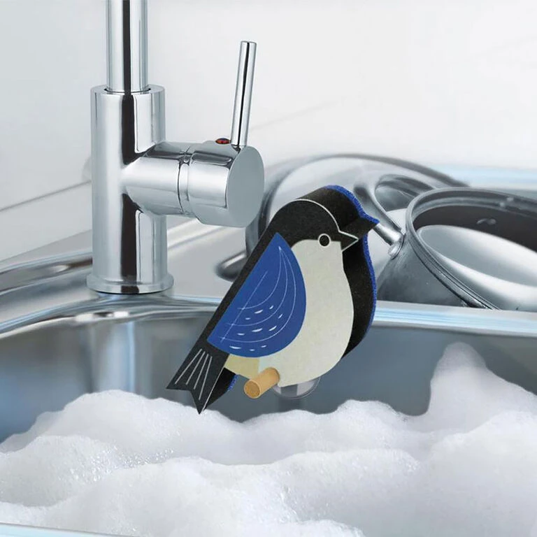 Turn a devout birdwatcher into a devoted dish washer with this cute set of kitchen sponges in bird shapes. Charming scrubby sponges in four different bird designs all include a hole at their base so they can “perch” upon the suction cup dowel to dry out when not in use. Each set contains four multi-layer sponges and one wooden perch with suction cup. These unique dish scrubber sponges make a great novelty gift for nature lovers.