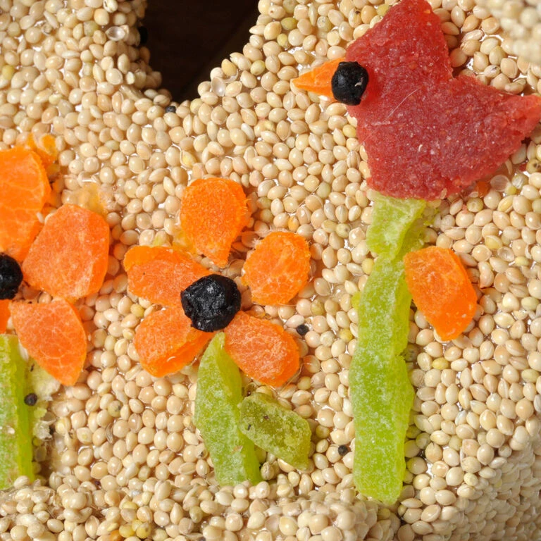 Delight your feathered friends with the delicious treats on this Mr. Bird Spring Fruit Casita wren house. A thoughtful gift for nature lovers, this quaint casita is covered in premium bird seed and delicious tidbits of apricot, strawberry, kiwi and blueberry. Once all the seed is eaten, wrens can nest in the wooden birdhouse for years to come. Handmade and decorated in the Texas Hill Country, this birdhouse makes a great gift for teachers, nature lovers, friends and family.